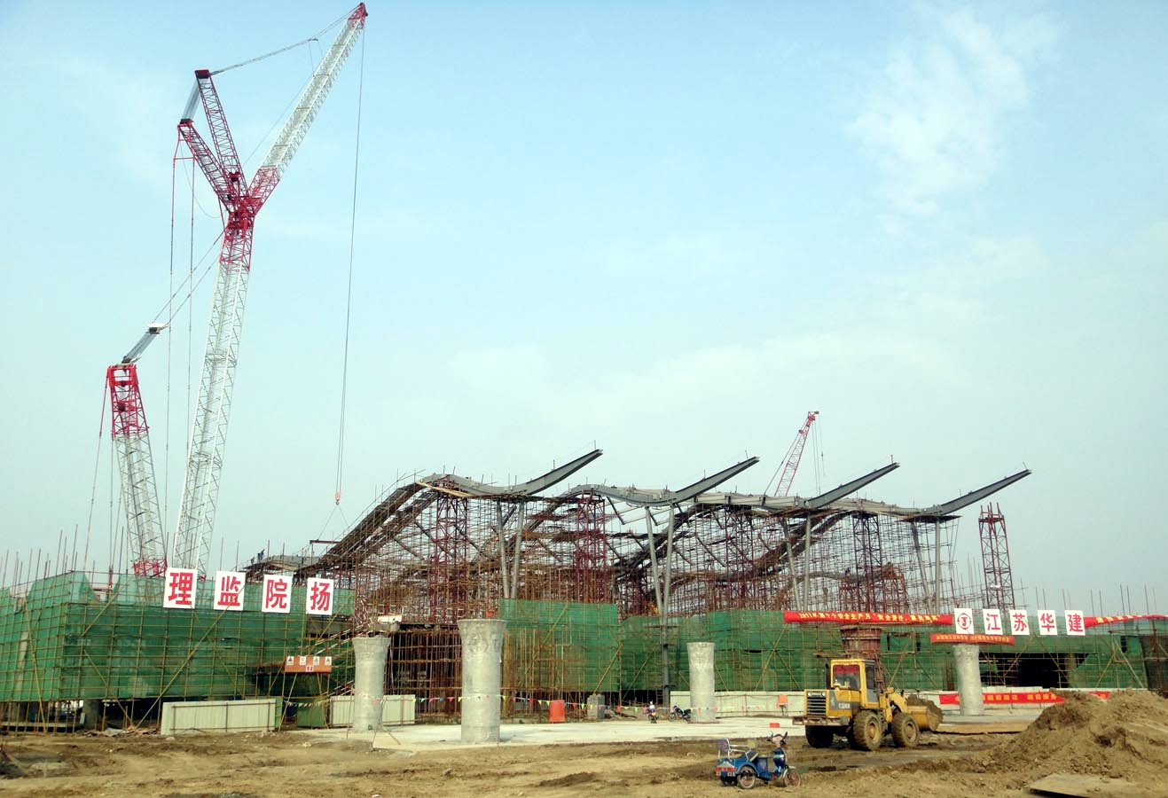 航站樓工程屋蓋采用環(huán)向、徑向的雙向曲面大空間鋼結(jié)構(gòu)體系,結(jié)構(gòu)復(fù)雜、工期緊、要求高。全體項目管理和工程監(jiān)理人員24小時現(xiàn)場值守,全力以赴,各項工作有序推進,成效顯著,得到了揚泰兩市各級領(lǐng)導(dǎo)的高度贊揚。