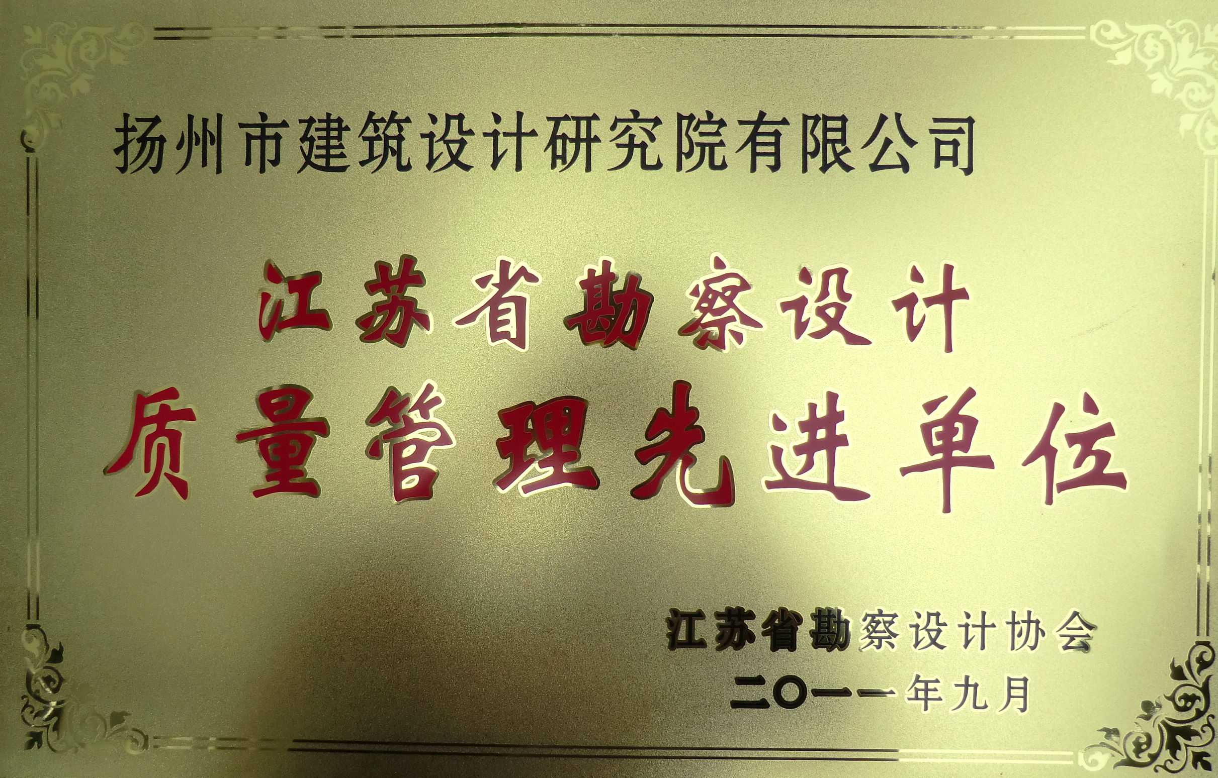 熱烈祝賀我院榮獲江蘇省勘察設計協(xié)會頒發(fā)的江蘇省勘察設計質(zhì)量管理先進單位