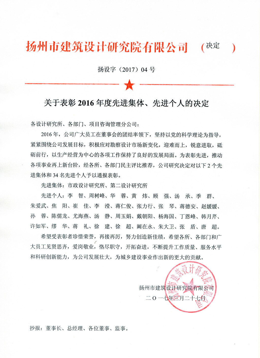 關(guān)于表彰2016年度先進集體、先進個人的決定